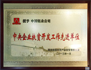 中國投資協(xié)會會員單位注冊證牌中國投資協(xié)會 中國紅十字勛章中國紅十字會會長華建敏 中國鋁業(yè)公司獲得金交易獎?wù)f明財務(wù)部 中國再生資源產(chǎn)業(yè)技術(shù)創(chuàng)新戰(zhàn)略聯(lián)盟理事長單位中國再生資源產(chǎn)業(yè)技術(shù)創(chuàng)新戰(zhàn)略聯(lián)盟 科技創(chuàng)新特別獎國資委 節(jié)能減排特別獎國資委 全國職業(yè)安全健康知識競賽優(yōu)秀獎國家安全生產(chǎn)監(jiān)督管理總局 信息化與工業(yè)化融合促進(jìn)節(jié)能減排試點示范企業(yè)工業(yè)和信息化部信息化推進(jìn)司 中國有色金屬加工工業(yè)協(xié)會第六屆理事會副理事長單位中國鋁業(yè)公司中國有色金屬加工工業(yè)公司 關(guān)于表彰中央企業(yè)2007-2009年任期業(yè)績考核業(yè)績優(yōu)秀企業(yè)和特別獎獲獎企業(yè)的決定國務(wù)院國資委 榮譽證書[中國鋁業(yè)公司被評為2010年度有色金屬行業(yè)統(tǒng)計工作先進(jìn)單位中國有色金屬工業(yè)協(xié)會 榮譽證書[中國鋁業(yè)股份有限公司被評為2010年度有色金屬行業(yè)統(tǒng)計工作先進(jìn)單位中國有色金屬工業(yè)協(xié)會 |