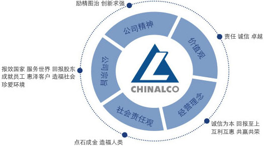 礦產(chǎn)資源是人類(lèi)社會(huì)生存和發(fā)展的重要物質(zhì)基礎(chǔ),是支持經(jīng)濟(jì)社會(huì)又好又快發(fā)展的重要保障。中鋁公司以全球化視野,通過(guò)透明、負(fù)責(zé)任的決策,高效利用公司的人、財(cái)、物等資源,可持續(xù)地開(kāi)發(fā)國(guó)內(nèi)外礦產(chǎn)資源,并以經(jīng)濟(jì)、綠色、和諧的方式,煉礦成金,變石為寶,為利益相關(guān)方創(chuàng)造更優(yōu)的綜合價(jià)值,實(shí)現(xiàn)經(jīng)濟(jì)、環(huán)境、社會(huì)和諧發(fā)展,進(jìn)而造福全人類(lèi)。