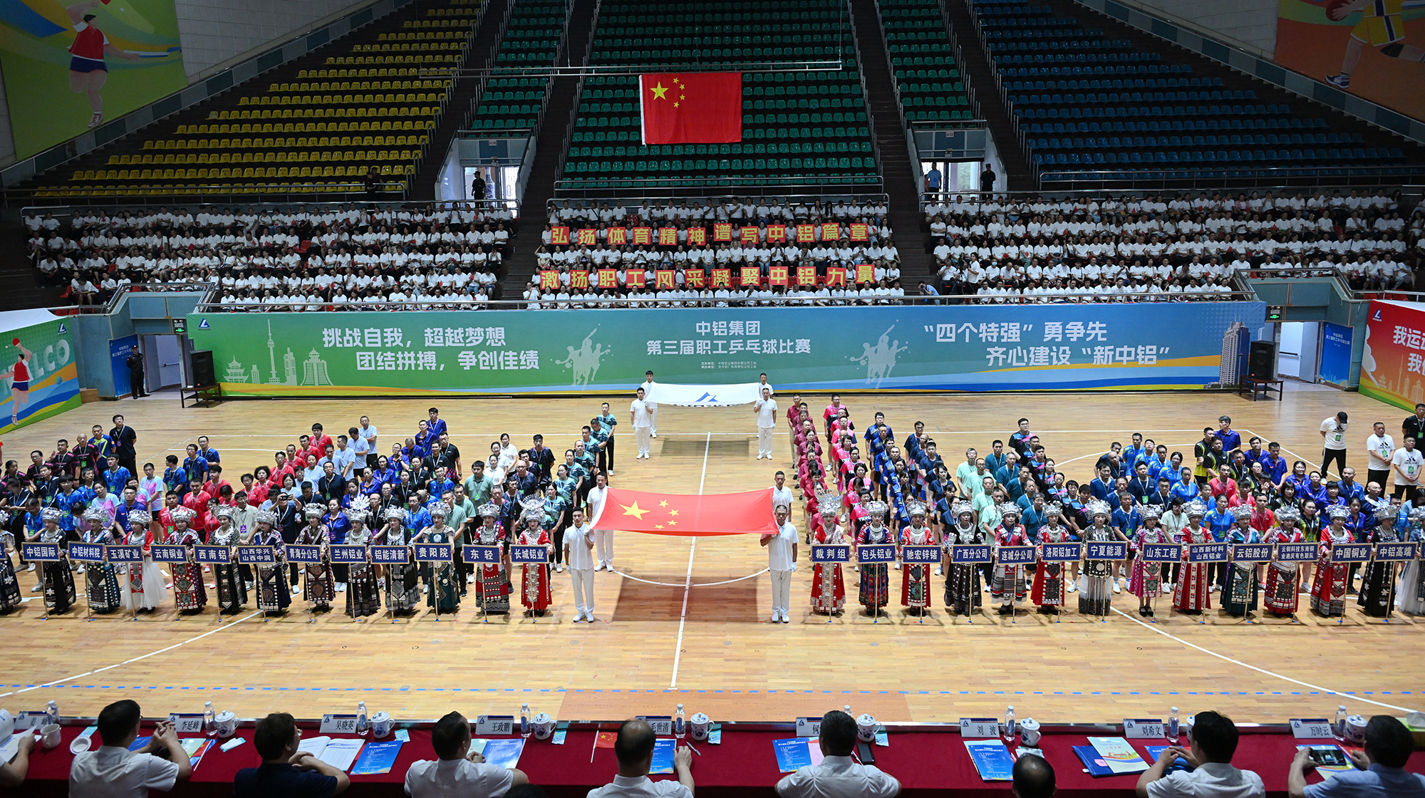 舉辦中鋁集團(tuán)第三屆職工乒乓球比賽,是中鋁集團(tuán)貫徹落實(shí)黨的二十大精神、中國(guó)工會(huì)十八大精神的具體舉措,是促進(jìn)群眾性職工體育活動(dòng)廣泛開展的有力示范;是貫徹中鋁集團(tuán)黨組要求,展示中鋁人時(shí)代風(fēng)采,凝聚奮進(jìn)力量,建設(shè)幸?!靶轮袖X”的有力舉措。中鋁集團(tuán)各級(jí)工會(huì)將以此次乒乓球比賽為契機(jī),大力弘揚(yáng)中華體育精神和勞動(dòng)精神、勞模精神、工匠精神,從更高的政治站位推動(dòng)職工體育工作,積極開展帶有“工”字特色、體現(xiàn)“工”字內(nèi)涵、彰顯“工”字精神的職工體育活動(dòng),團(tuán)結(jié)動(dòng)員廣大職工,錨定“新中鋁”建設(shè)目標(biāo),圍繞“兩個(gè)保障”,聚焦“四個(gè)特強(qiáng)”,以加快建設(shè)世界一流優(yōu)秀有色金屬集團(tuán)的新業(yè)績(jī)喜迎新中國(guó)75周年華誕。